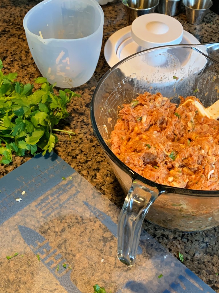 - In a large mixing bowl combine all ingredients with ground turkey mixing well with a rubber spatula.
