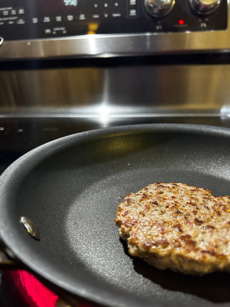 Note – if I am not going to use it all right away – I put the extra patties on squares of parchment paper and freeze in stacks of four in zip lock backs with the air removed.